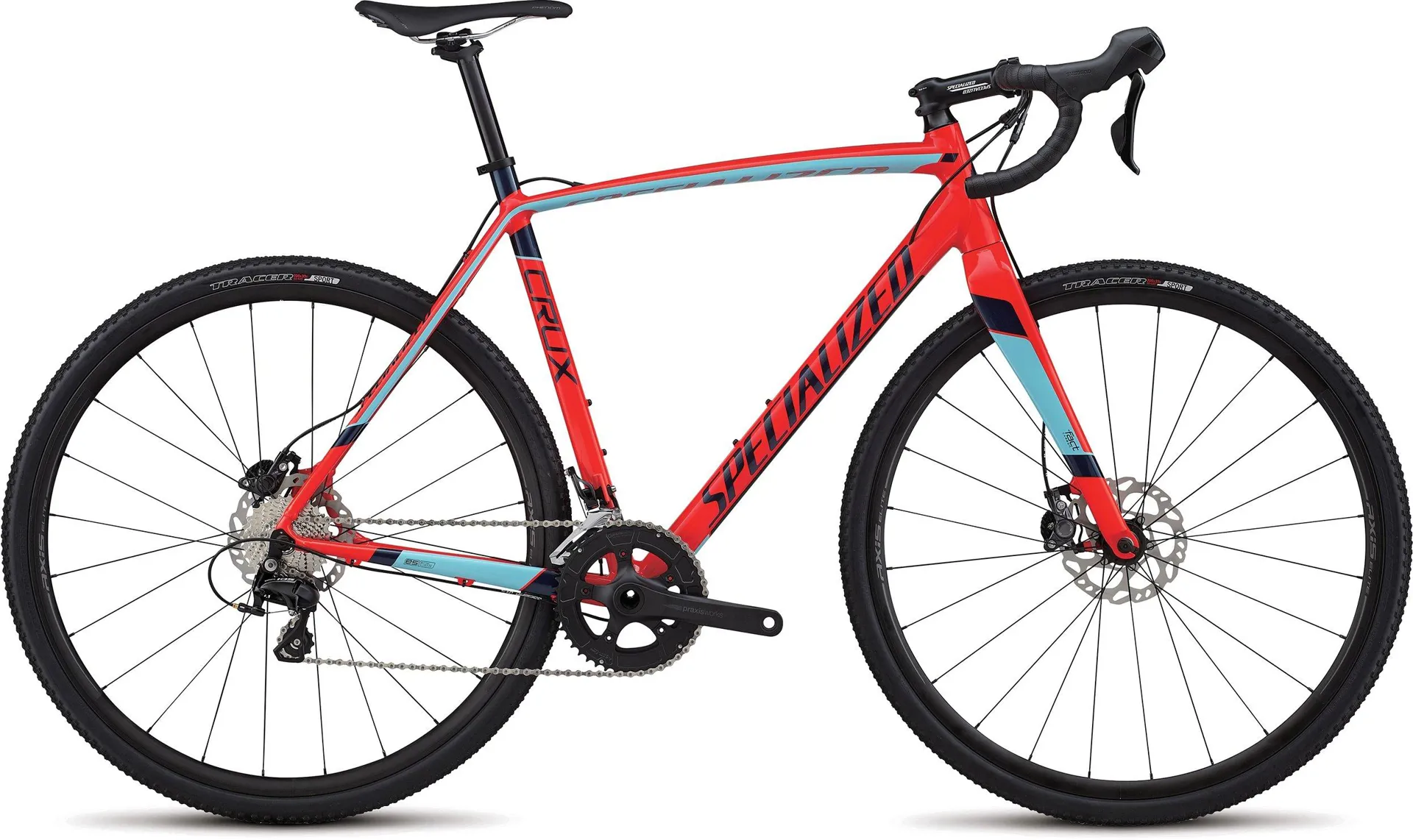 Whether you're just getting into cyclocross or exploring the road less traveled the CruX Sport E5 is the perfect bike to help you get out there and get after it. We designed it around a durable E5 Premium aluminium frame and FACT carbon fork that are equal parts lightweight rugged and responsive. For the build it take a no-nonsense approach to performance utilizing a mix of components from Shimano Praxis and Tektro so you'll benefit from a durability-first design when the terrain gets rough. Further along these lines you'll find powerful hydraulic disc brakes and Tracer Sport tires that were hand-selected for their all-condition abilities. So start practicing your barrier hops because this bike will be ready to go just as soon as you are.